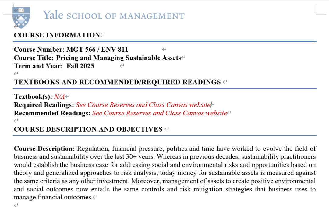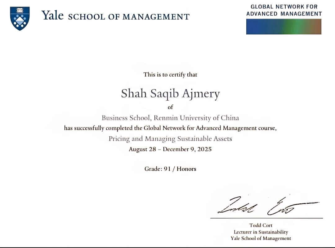 As part of my MBA journey at Business School Renmin University of China (Renmin Business School or RMBS for short), I had the opportunity to participate in the SNOC (Select Network Online Courses) course Pricing and Managing Sustainable Assets, offered by the Yale School of Management through the Global Network for Advanced Management (GNAM). This experience was both academically enriching and professionally insightful, allowing me to engage with emerging ideas in sustainable finance within a truly global learning environment.
