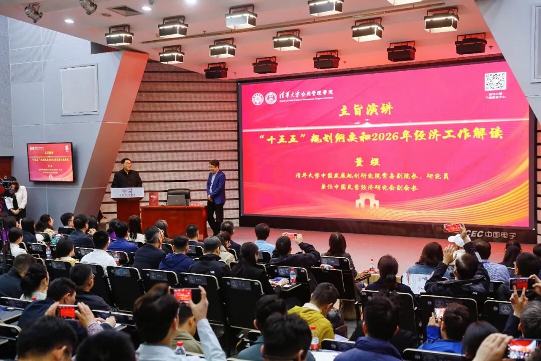 近日,清华大学公共管理学院(以下简称“清华公管学院”)举办“奋进‘十五五’,两会聚力量”专题讲座,特邀清华大学中国发展规划研究院常务副院长、研究员董煜发表了题为“‘十五五’规划纲要和2026年经济工作解读”的主旨演讲,并与现场嘉宾进行了一系列有针对性的互动讨论,专题讲座由清华公管学院干部教育中心主任张严冰主持。