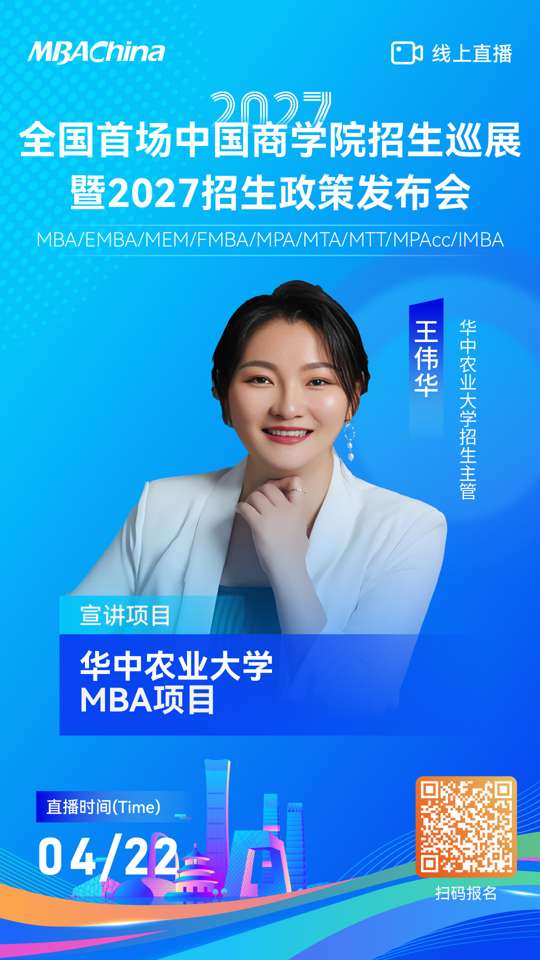 华中农业大学经济管理学院拥有农林经济管理一级学科博士学位授权点,形成了以农林经济管理双一流学科为优势,工商管理学科和应用经济学科协调发展的学科格局。学院MBA项目自2009年获批以来,始终秉承 “理论与实务并重、本土与国际复合” 的教育理念;坚持 “质量第一、规范管理、内涵发展” 的培养方针,积极打造中部地区有影响力的MBA品牌,形成了人力资源管理、市场营销管理、创新创业管理等多个研究方向,为我国中部地区培养了大量的高素质经营管理人才。