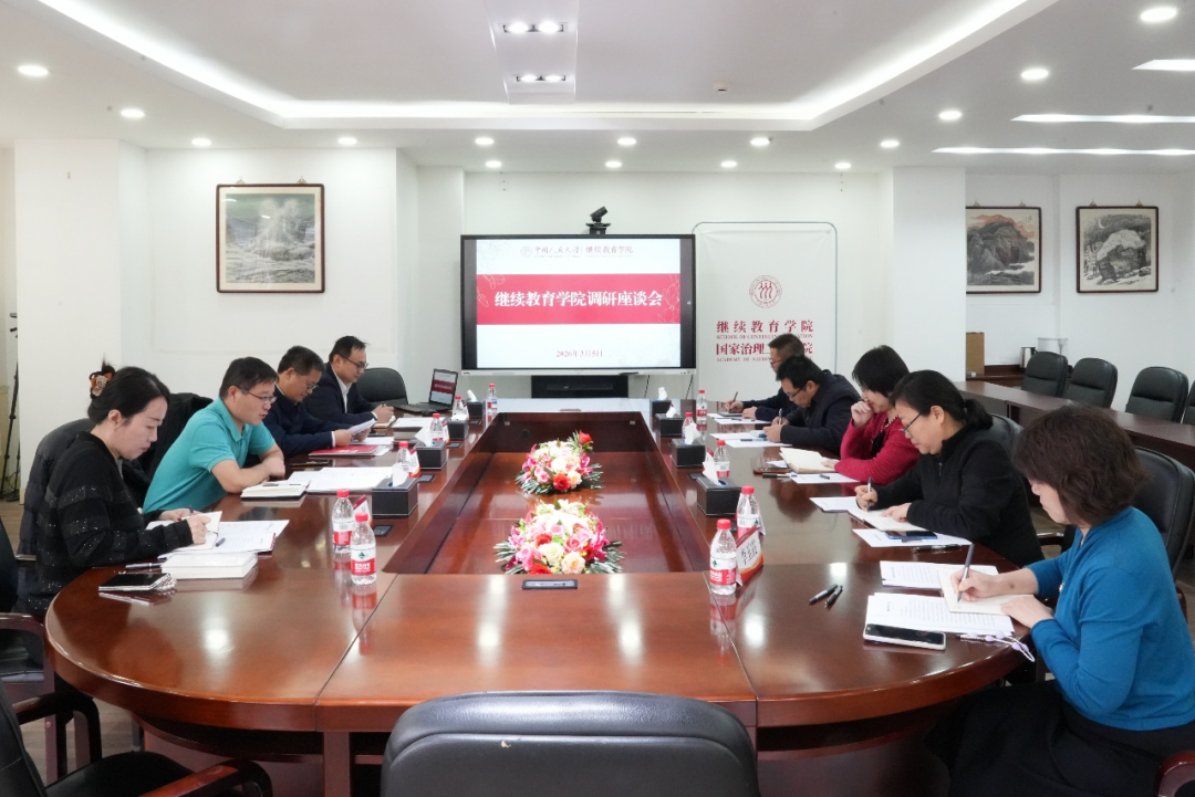 2026年3月5日,支晓强副校长来我院调研继续教育工作。继续教育学院全体领导班子成员参加调研座谈,继续教育处乔鹏处长陪同调研。