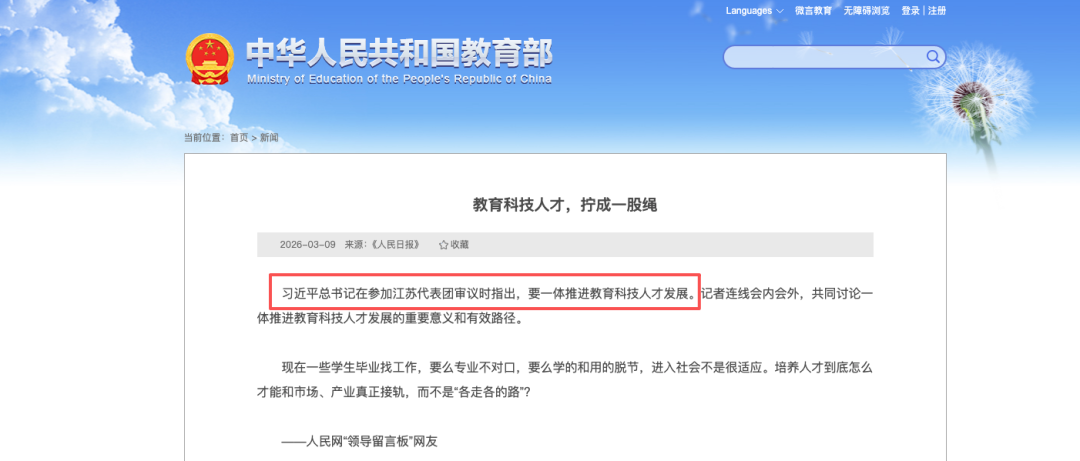 在2026年全国两会刚刚落下帷幕,“一体推进教育科技人才发展”成为国家战略焦点背景。