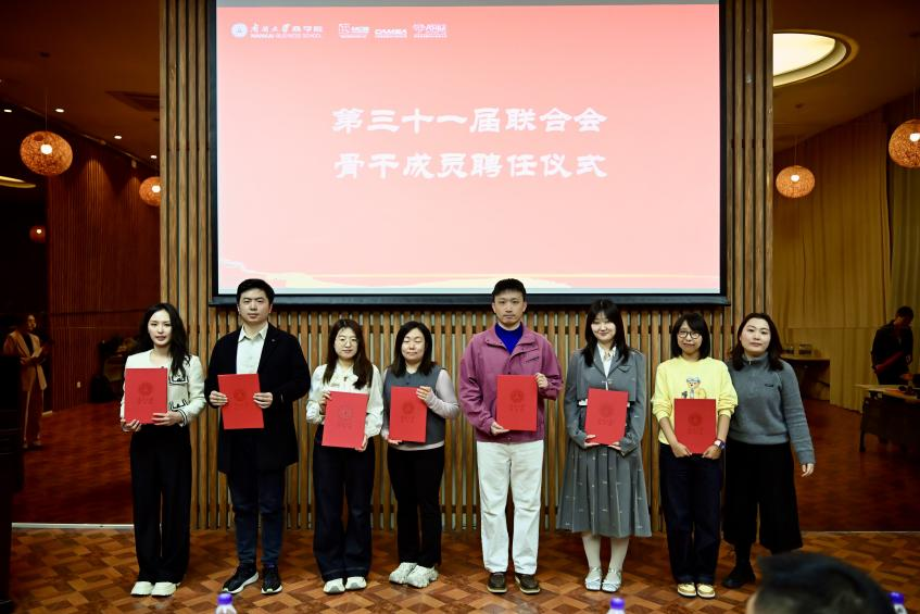 南开大学商学院专业学位教育中心向MBA第三十一届联合会骨干成员颁发聘书。每份荣耀的背后,都是一份服务的承诺。聘书在手,使命在肩,他们将用接下来的一年,书写属于自己的南开故事。