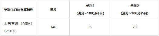 工商管理(MBA)专业一志愿复试分数线如下: