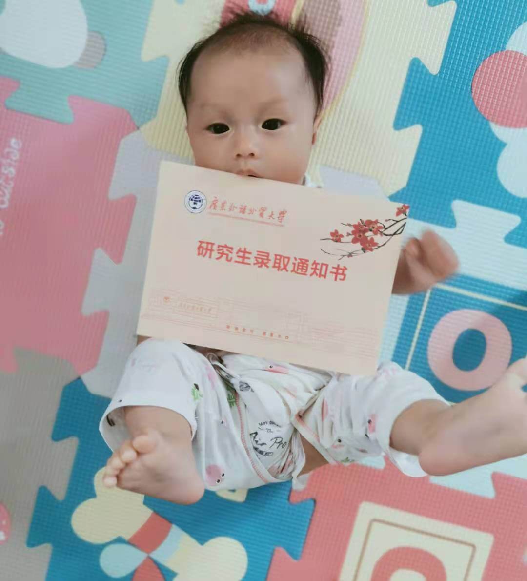 我是一个很有计划性的人,在要宝宝这方面也一样,果不其然,在我参加广外第一轮提面的当天我就验出我怀孕成功了!起初我想,一边怀孕一边备考其实并不难,因为肚子里的小宝宝还不会捣蛋,也无须操心ta。但当真正怀孕后,我发现这并没有想象中那么简单。首先孕初期的恶心反应让我实在没法好好看书,身体也感到莫名的疲惫,连坐地铁也会感到晕车,还有一大堆产检在那等着。而且当你怀孕后,就会有很多东西需要了解,包括营养方面的,哺乳方面的,养育儿方面的等等。另外,我毕业已经有十年多了,没有了考试的状态,这些让我觉得,只要过线考上广外就心满意足了,从不奢望去拿奖学金,所以在看广外招生简章的时候,奖学金那块我是直接忽略没看的。因此,直到现在我还是认为我获得全奖简直就是全凭运气。只不过,假如运气也是一种实力的话,我承认我还是挺有实力的,毕竟对生活时刻充满积极乐观的态度,自律进取才能获得好运气。