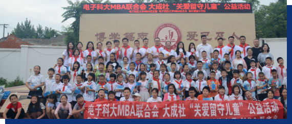 在电子科技大学MBA 教育中心、电子科技大学 MBA 校友会、电子科技大学 MBA 联合会的共同倡导下, 从2013年9月开始,在电子科技大学MBA2013级新生中正式启动了以“做慈善事业的行动者,当爱心奉献的传播者”为主题的慈善公益活动。
