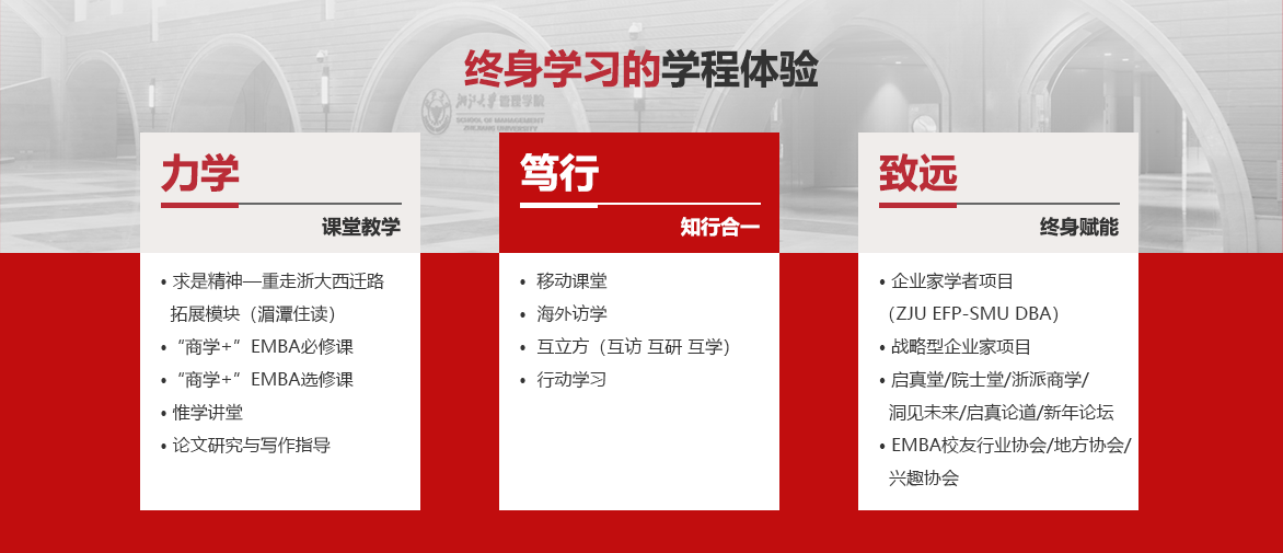 在浙大EMBA,不仅可以听到浙江大学最精锐的师资课程,还能听到全国顶尖高校的师资课程,受益匪浅。