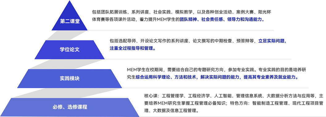 上海理工大学MEM教育重点围绕以下三个研究方向,致力于培养适应我国现代工程事业发展的工程管理人才: