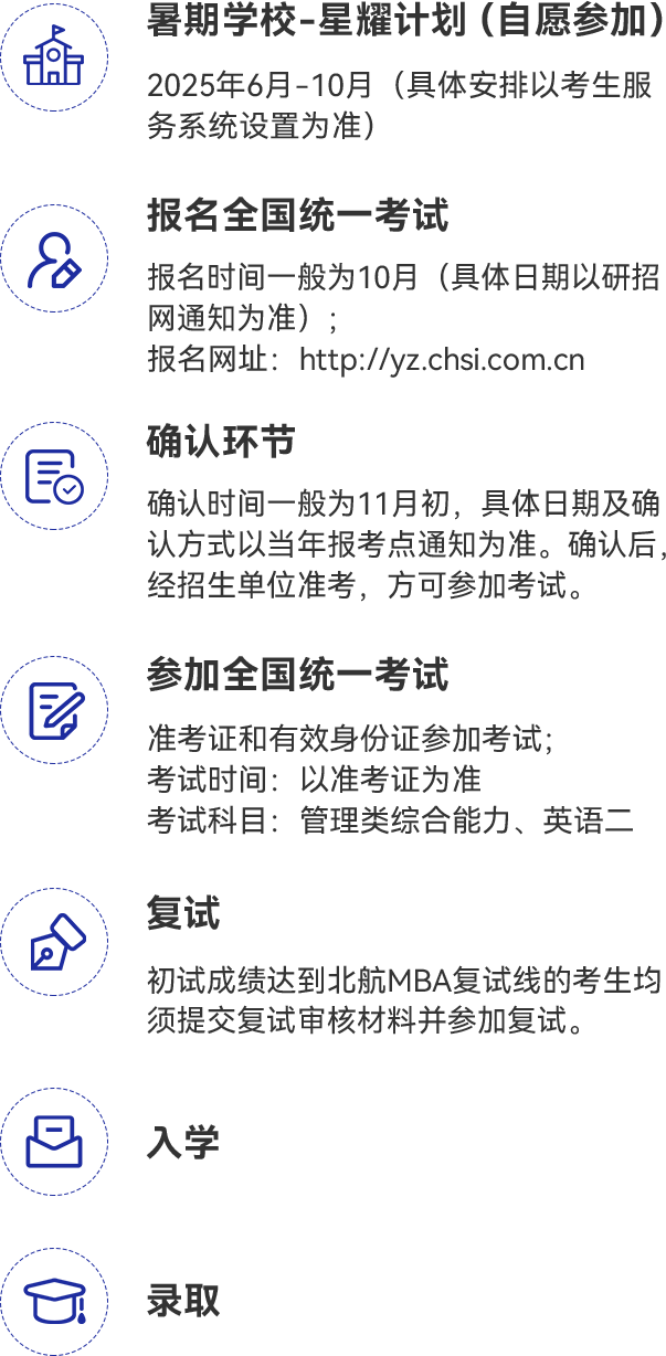 声明:2026年北航MBA招生政策最终以我校及我院当年硕士研究生招生简章及复试录取工作方案为准。如上级部门出台新政策,北航MBA教育中心将做出相应调整。如有变化,请以后续通知为准。我校从未委托任何机构或个人以北航MBA教育中心名义进行招生工作,相关信息请您关注北航MBA官网及微信公众号。