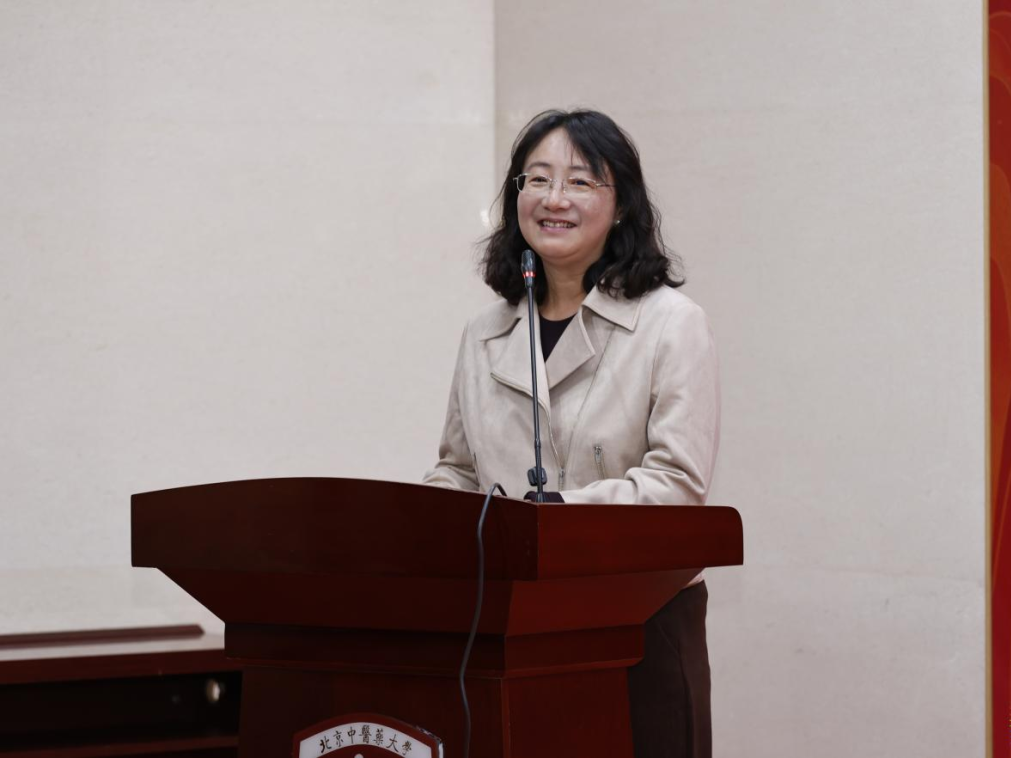 随后,北京中医药大学中医老年大学顾问谷晓红教授讲话。她从中医药文化传承的高度,阐述了老年大学设立的深远意义。谷晓红表示,中医老年大学不仅是学校“以文化人”的生动实践,更是中医药在促进生命观、健康观、防治观方面的鲜活体现。她勉励新学员要带着问题学、联系实际学,将“治未病”的智慧融入日常生活,做自身健康的第一责任人,做家庭健康的守护者。