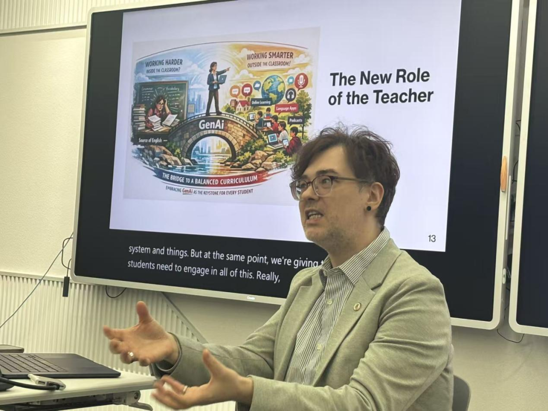 讲座最后,Reynolds博士总结指出,未来英语教学的发展方向在于打破课堂与生活、正式与非正式学习之间的界限。教师应由知识传授者转型为学习引导者,引导学生善用课外资源与AI工具,在真实语境中主动运用语言。与此同时,教师也需坚守教育本质,在技术应用与语言素养培养之间保持平衡,使英语学习真正回归学以致用的初心。