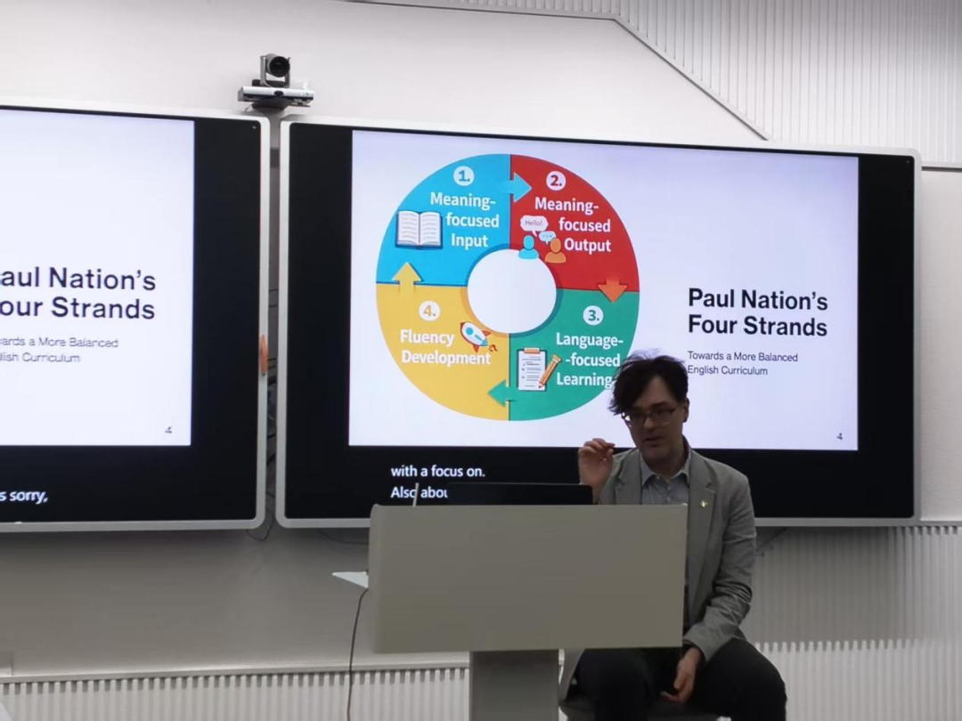 针对现实教学困境,Reynolds博士提出了务实而灵活的解决思路。他强调,不应盲目推崇单一教学法,而应通过模块化课程设计,结合Paul Nation四要素法,在语言输入、输出、学习与记忆之间实现平衡,从而构建更加高效的课堂体系。