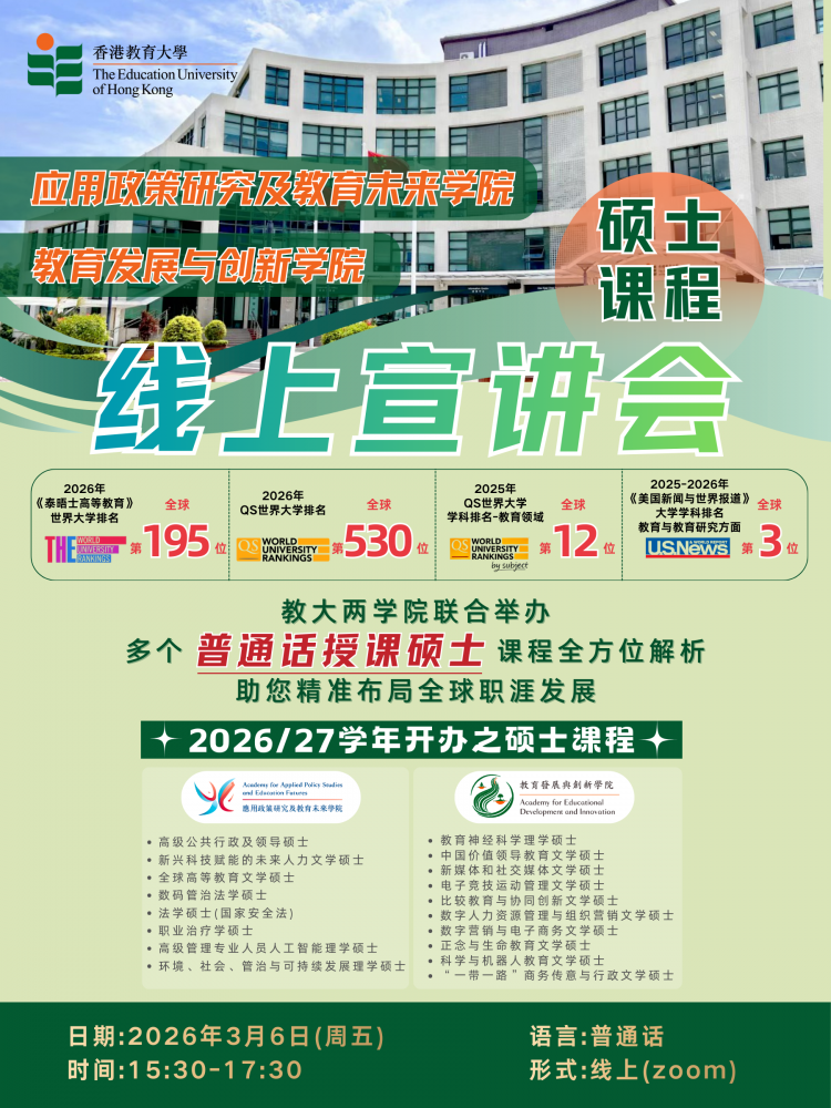 15:30 – 16:00|教大,AAPSEF及AEDI风采展示