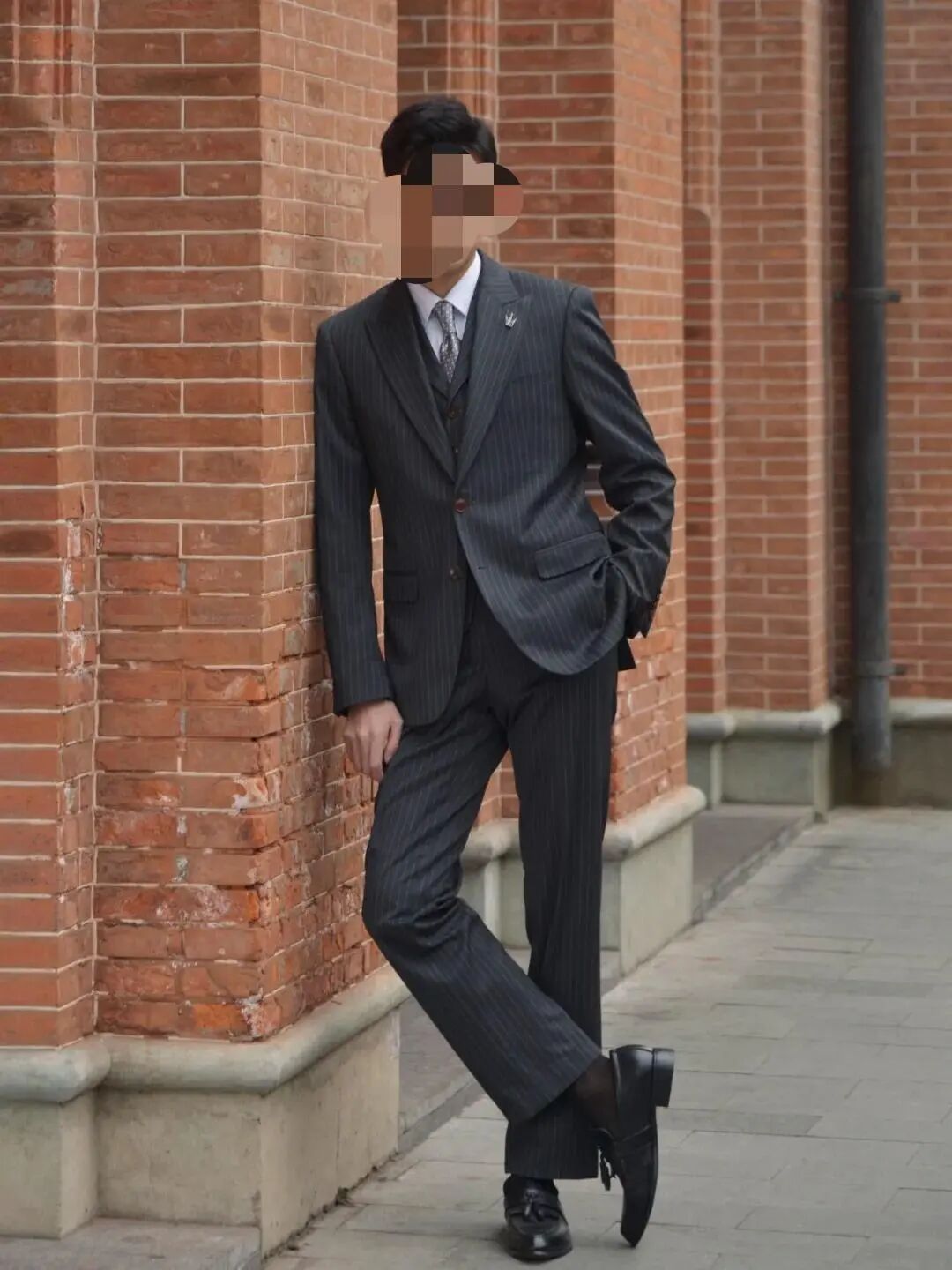 全套亮面黑西装 + 硬挺白衬衫 + 锃亮黑皮鞋,学生穿会极度违和,反而会让你全程拘谨,放不开表达。