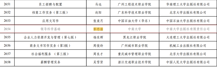 教育部正式公布了第二批“十四五”职业教育国家规划教材书目,由中南大学公共管理学院彭忠益教授主编,中南大学、南开大学等多所高校专家及山河智能、拓维等多家企业专家联合编写,中南大学出版社出版的《领导科学基础》(第四版)成功入选。这不仅是对教材编写团队多年来持续深耕、精研内容的肯定,更是对教材在职业教育改革中发挥示范引领作用的认可。