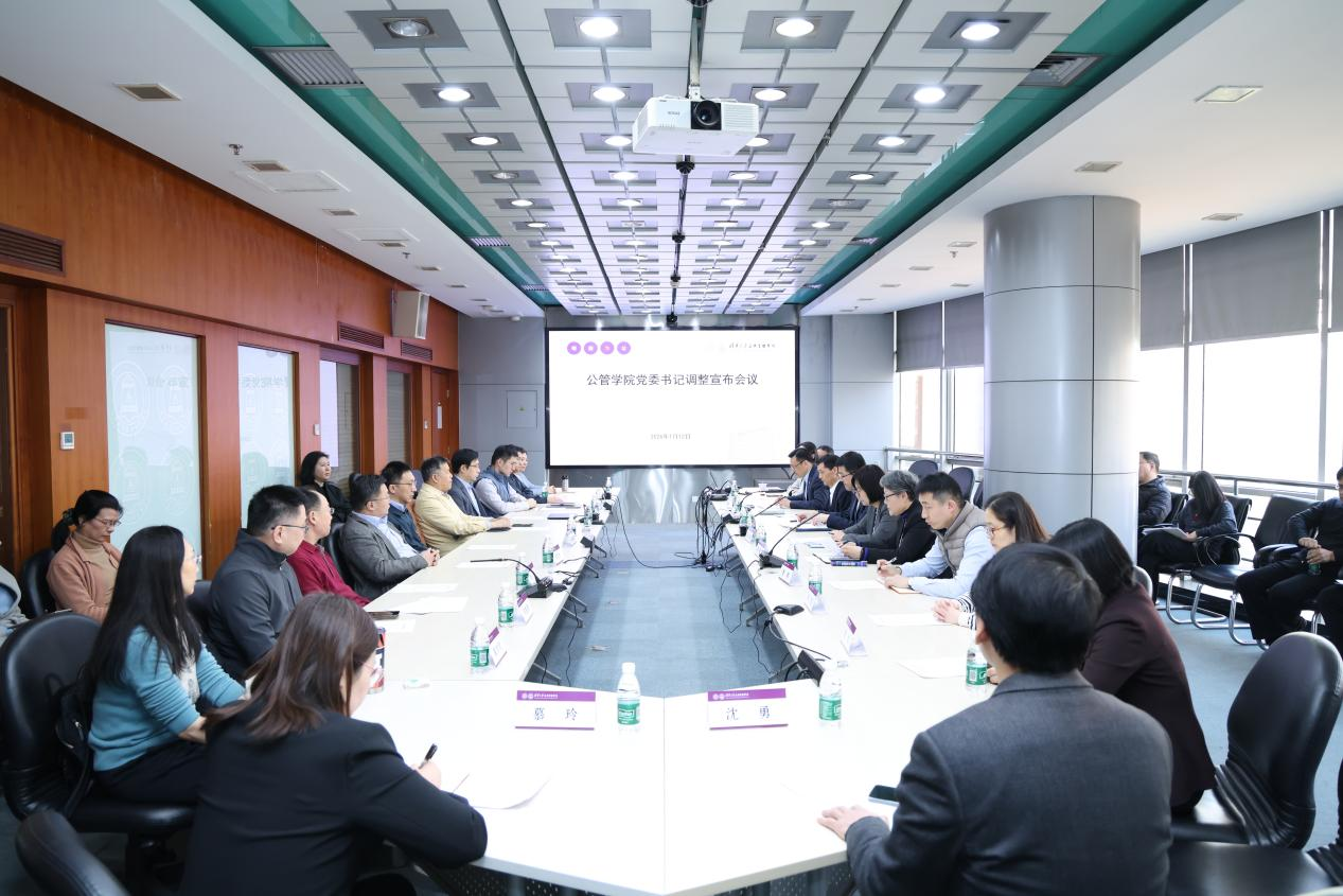 张婷宣读了学校党委关于公管学院党委书记调整决定,任命谢矜为公管学院党委委员、书记,彭宗超不再担任公管学院党委书记、委员。