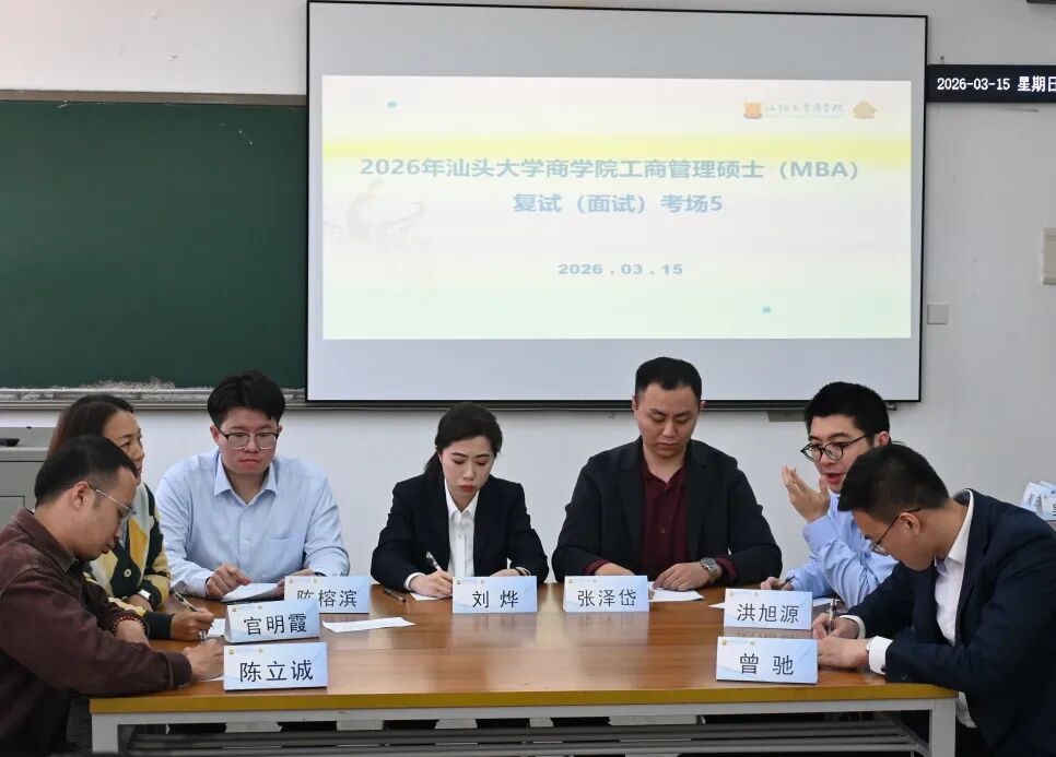 2026年3月15日,汕头大学商学院 2026 年工商管理硕士(MBA)第一志愿考生复试工作顺利落下帷幕。本次复试严格遵照教育部及汕头大学研究生院相关文件要求,紧密结合学院实际情况,制定并实施严谨规范的复试工作方案,全程坚守公平、公正、公开的招生原则。