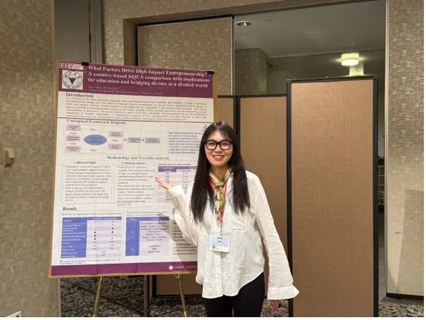 博士生赵紫睿作题为《What Factors Drive High-Impact Entrepreneurship? A Country-Based fsQCA Comparison with Implications for Education and Bridging Divides in a Divided World》的海报展示。