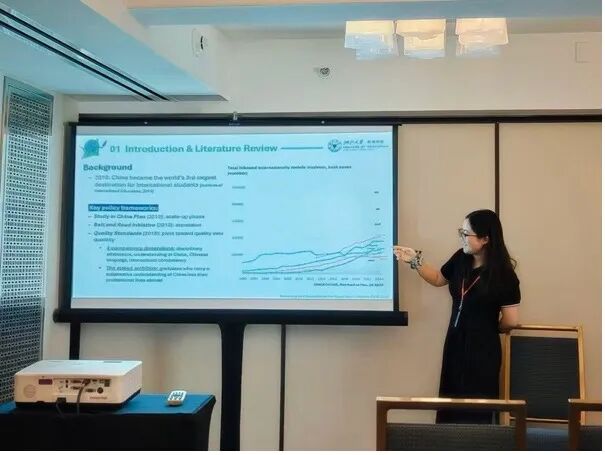 博士生徐如梦、马雪梅、刘林佳分别作题为《Opening the Black Box: A Review of Teacher Professional Learning as Boundary Crossing in University-School Partnership》《Can Kazakhstan Become a Central Asian Education Hub? —An Innovative Analysis of Knight’s International Education Hub Theory》《Becoming and Belonging in the Rising Hub: A Thematic Analysis of International Student Experiences in China》的口头汇报。